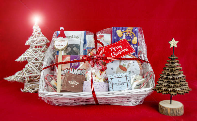 Our hampers start from £10- with choice of products, wrapped in cellophane and presented in hamper baskets